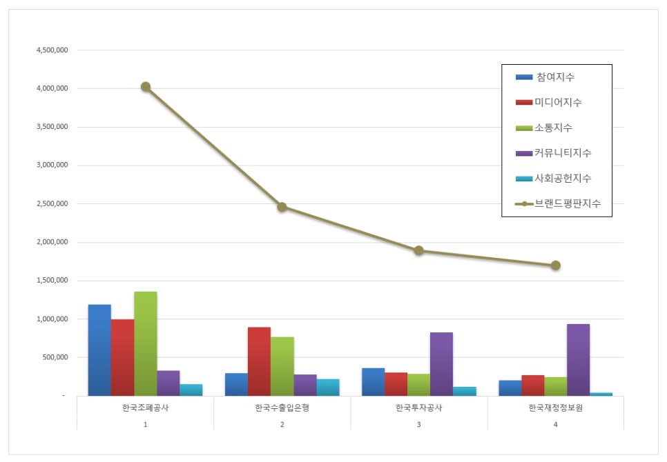 재정경제부 공공기관 브랜드평판 2026년 4월 빅데이터 분석결과, 1위 한국조폐공사 2위 한국수출입은행 3위 한국투자공사 순으로 분석되었다.