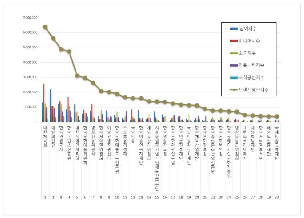 문화체육관광부 공공기관 브랜드평판 2026년 3월 빅데이터 분석결과, 1위 대한체육회 2위 예술의전당 3위 한국관광공사 순으로 분석되었다.